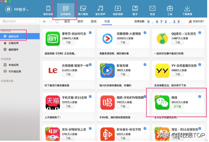 - 我们让手机连接电脑,会直接下载PP助手或者爱思助手手机版,从而可以搜索微信,查看老版本,也可以通过查看历史版本进行下载。