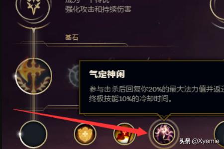 2、第二枚符文气定神闲。厄加特在前期的技能还是很耗费蓝量的,而且厄加特的大招的斩杀效果很好用,搭配上气定神闲可以在参与击杀后有着大招减CD效果。
