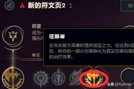 2,然后点击征服者,征服者的被动配合剑魔的吸血,可提高剑魔在对线上的赖线能力。