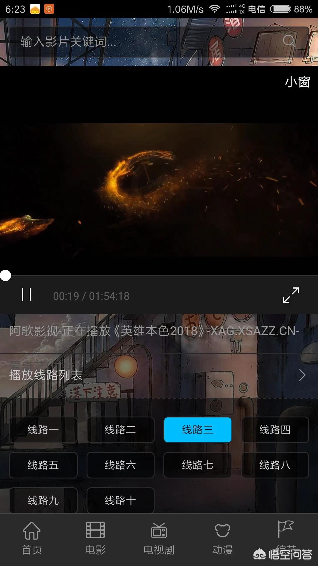 可以看到它总共有四大板块,电影 电视剧 动漫和综艺组成。这款软件资源也非常多,而且完全免费,这里我就以电影英雄本色2018为例(这部电影在腾讯视频里需要开通会员才能看的)在搜索框输入 英雄本色2018