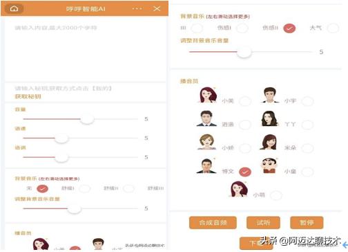 大家在将文字转音频的过程中,需要根据场景选择不同的音色,成熟的、磁性的、活泼的、男声、女声,这都是我们的实际需求。呼呼智能AI目前支持九种音色选择,基本可以满足用户所有的场景需求。我们在将一大段文字转成音频的过程中,也可能希望给音频配上背景音乐。呼呼智能AI目前支持多种背景音乐选择,舒缓的、感伤的、大气的、浪漫的、卡通的、古韵等不同类型。