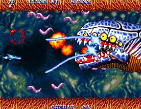 这是另一款非常经典的横版飞行射击游戏,最初由日本游戏公司“威达电子”于1990年推出,之后由“Konami”公司接手并推出多个版本。玩家扮演的是一架战斗机,在游戏中不断击败来犯的敌人,获得更高的分数。这款游戏的特色在于可以捡取各种特殊武器和道具,并有可供选择的不同机型。