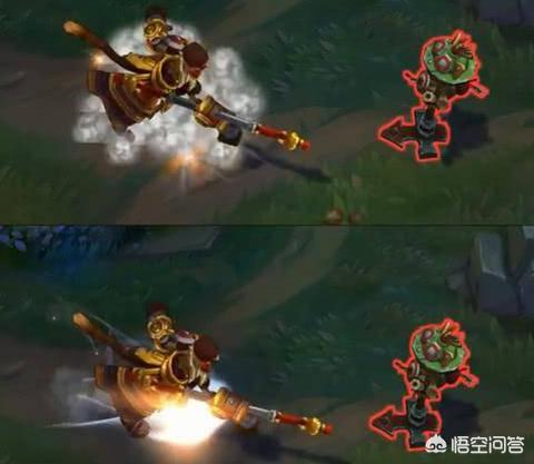 “E”技能,这样一对比,感觉之前的猴子踩得简直就是“烟雾弹”,新特效更像是一朵流云,好看了许多。