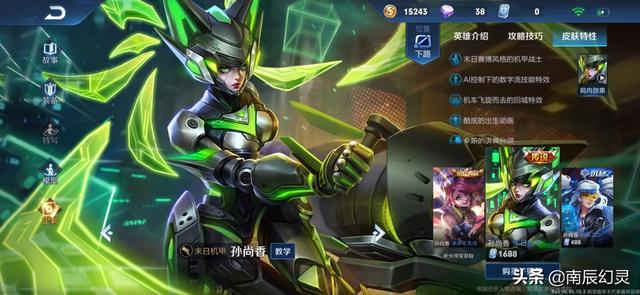 末日机甲是传说皮肤的。一般都不会在。皮肤商店,孙尚香的其他皮肤有一款是在的的。。
