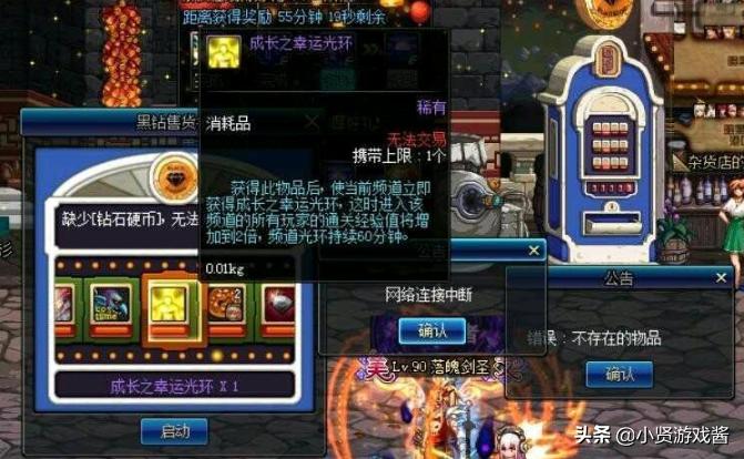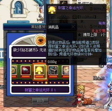 经常抽在黑钻售货机抽奖的朋友,相信都知道光环这种奖励,光环奖励总共有,成长之幸运光环,财富之幸运光环这两种,这两种奖励最特殊,使用之后可以让当前频道的通关经验,物品掉落几率增加2倍,但是也被称为黑钻售货机最神秘的道具,因为很多玩家都未抽到过,反正小贤抽了有几千个黑钻硬币了,一次光环道具都没有。