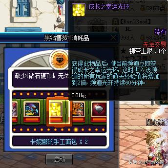 大家都知道黑钻有很多种特别,比如比一般玩家多30点PL,刷图能额外翻一张黑钻卡屏,以及用刷图掉落的钻石硬币在黑钻售货机抽奖等等,在黑钻售货机的奖励有很多,各种HP ,MP药剂,强化卷,调整箱,虽然一般抽到的都是蚊子腿奖励,但是有是有一些欧皇玩家抽到+12强化卷,不过有一种奖励虽然黑钻售货机拥有,但似乎只是一个摆设而已