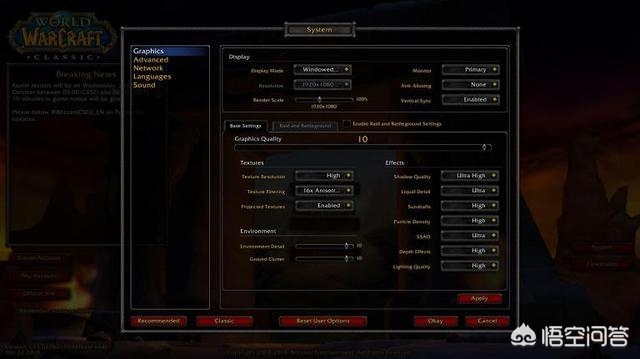 不知道您的电脑能否开启10档画面呢?从暴雪官方发出的设置面板中可以看到,《魔兽世界》怀旧服将采取“先进”的美工设计,画面水平也会和正式服接近。所以说,如果你准备在家里试玩的话,可得准备一个足够合格的电脑啊,如果连怀旧服都要调到各项LOW去玩的话,试玩体验恐怕要掉分不少了。