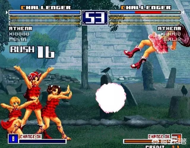 在《拳皇2002》中,雅典娜只要释放MAX2超必杀技能:超能力混合,就可以打出好几种效果,其中包括了雅典娜复原和桃色固。