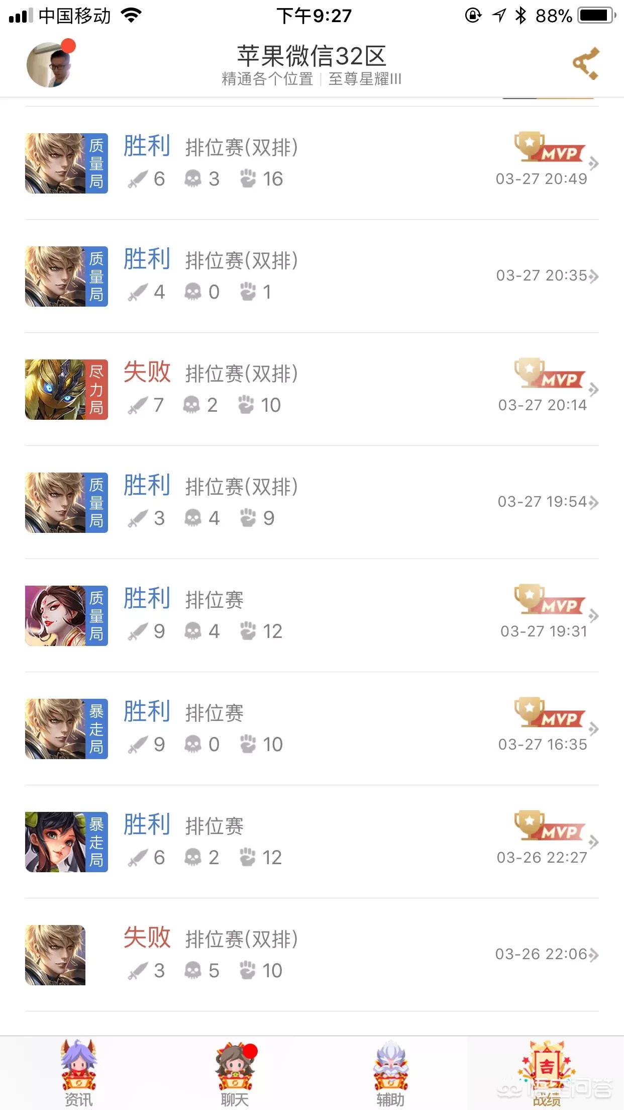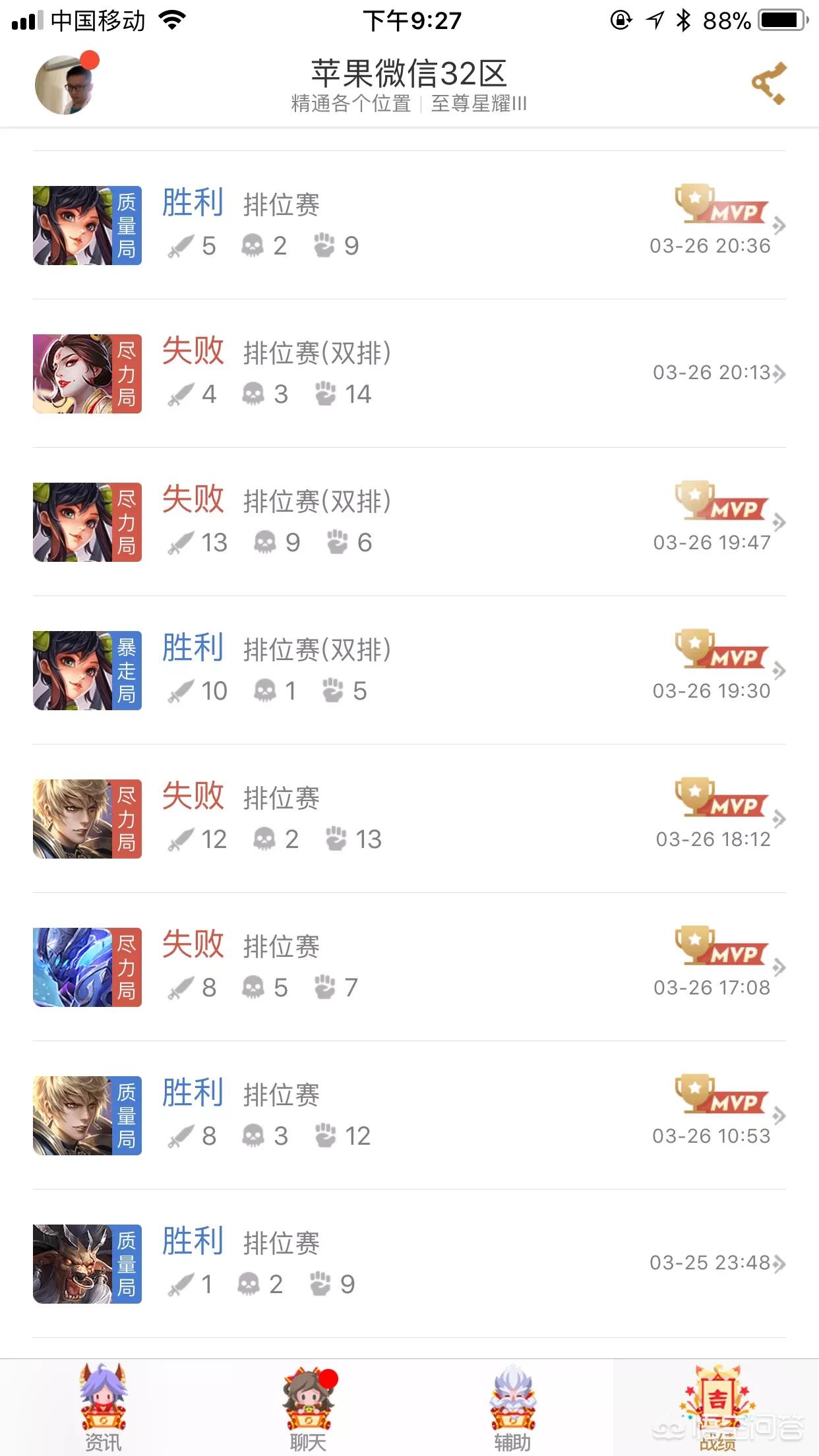 我目前用的是嬴政比较多吧!以前玩孙尚香、武则天、虞姬、阿柯也挺多的。看看这两天打的排位赛吧。