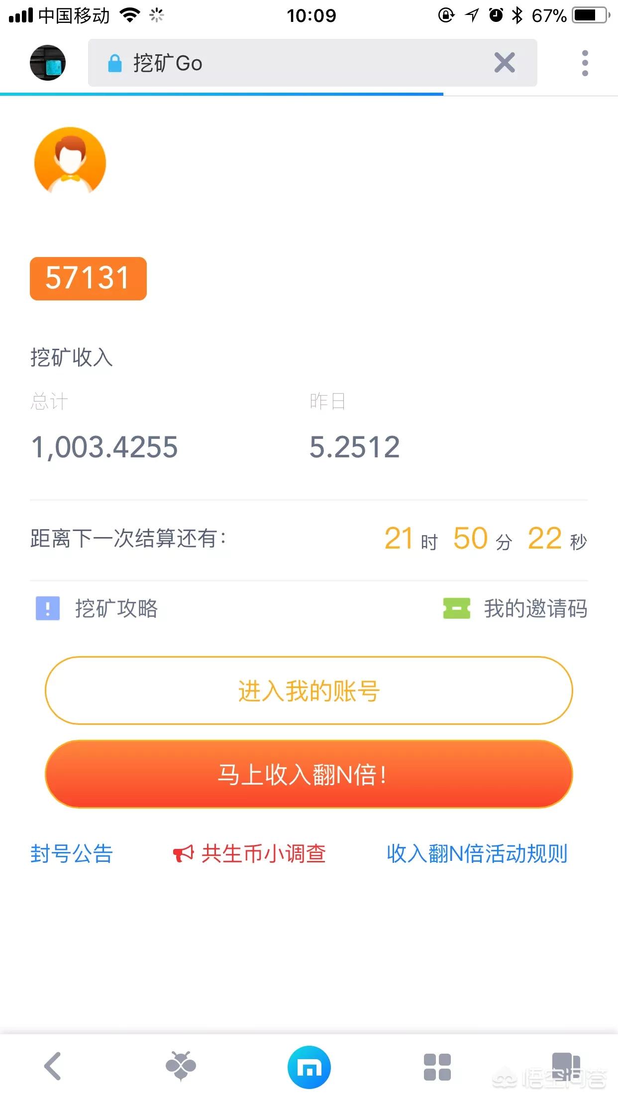 2.打开新安装的浏览器,点击中间有个挖矿,点击一键安装,安装完成后,点击登录,点击注册傲游浏览器,绑定Lives One账号,继续注册,注册完成,记住账号绑定,就完成了。用浏览器浏览任何东西,第二天就会挖到共生币了。