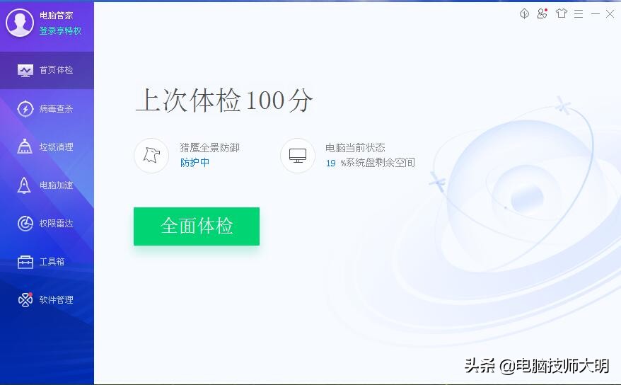 再说电脑管家,电脑管家是腾讯的产品,腾讯业务繁多,电脑管家洁面清晰,没有捆绑广告这是用户比较喜欢的,但是电脑管家在杀毒方面却不行。