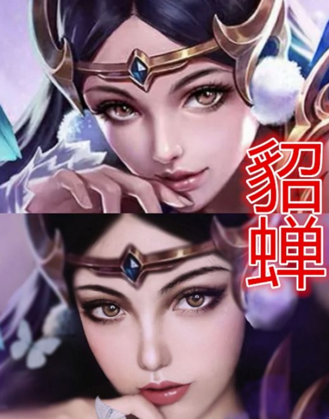 相信之间大家都看过类似新闻,这位英雄和某某明星撞脸,那位英雄和某某明星好像。其实无非就是一些玩家找到明星们摆了一些姿势和英雄本身或者皮肤相似。然后脸型从侧面看确实是有些像呢。最近还有一些玩家整那些半脸照,所谓半脸照,就是玩家们用半张脸和英雄半张脸合成一个脸,看看相似度有多高。不得不感叹啊,有些玩家真的是几乎和英雄的另一半脸一模一样。