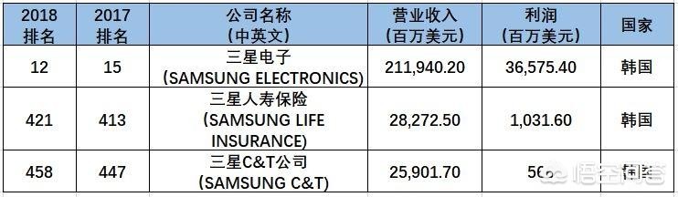 根据美国《财富》公布的2018年世界五百强企业,来自三星集团旗下的公司就有三家,分别是三星电子、三星人寿保险以及三星物产。其中三星电子的营收高达2119.4亿美元,位居五百强第12。