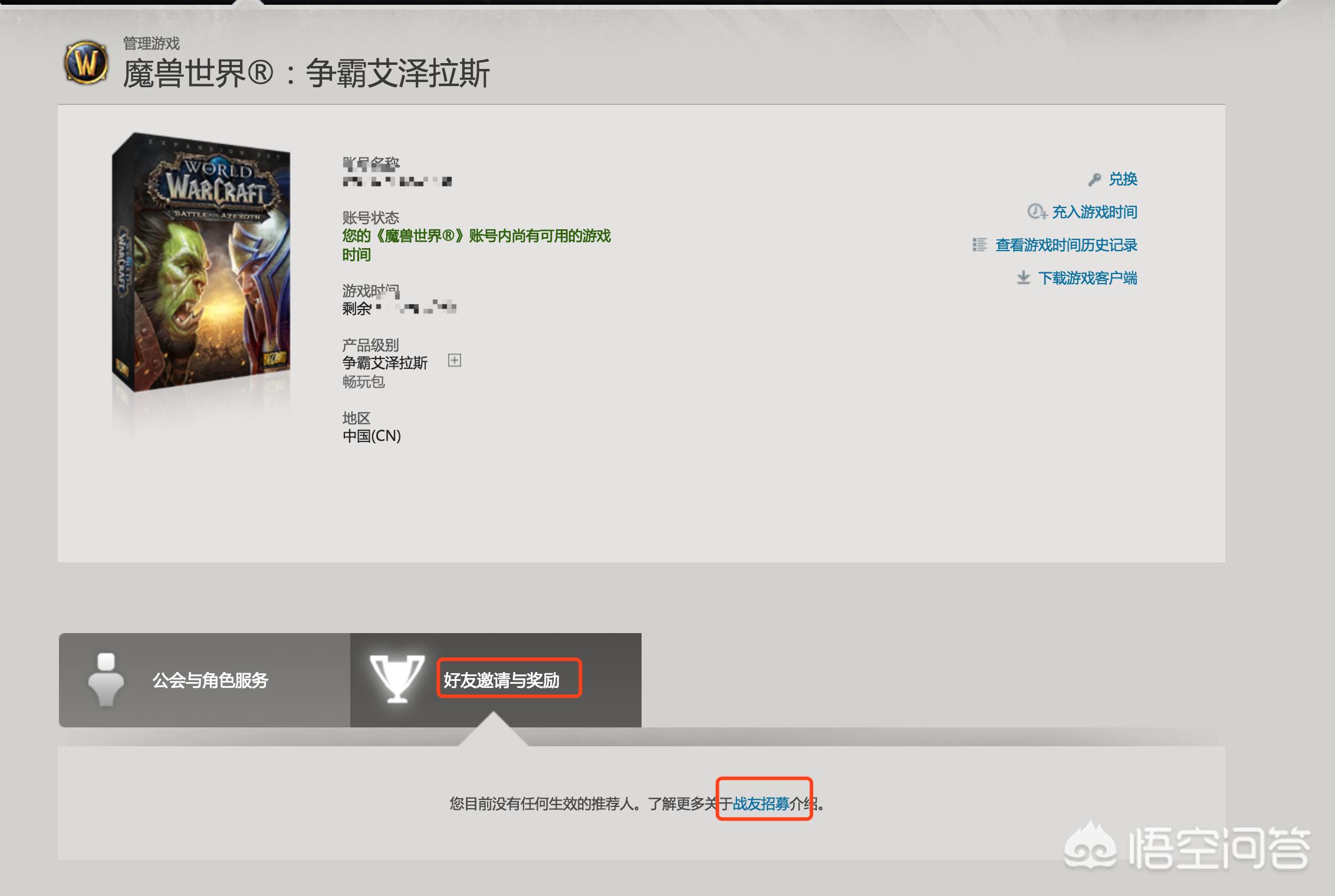 下面给出一张战网查看战友招募的具体地方,你只需要登录战网后,选择《魔兽世界》即可看到我这个界面了。希望能够帮助到大家拿到召唤的坐骑。