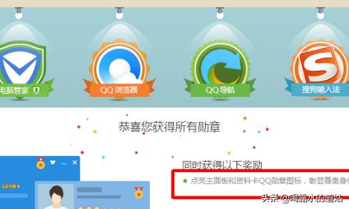 3、下载之后,安装好,我们就会看到上面显示的,我们已经获得了哪一个,那一个未获得,如果安装了没有获得的话,我们就点击重新获取。等到全部获取之后,我们就完成了勋章墙了,我们的勋章图标也就点亮了,我们打开qq的主界面,就会看到上面的勋章图标点亮了。