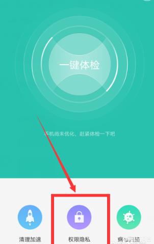 2,当进入到手机管家后,可以看到权限隐私,点击。