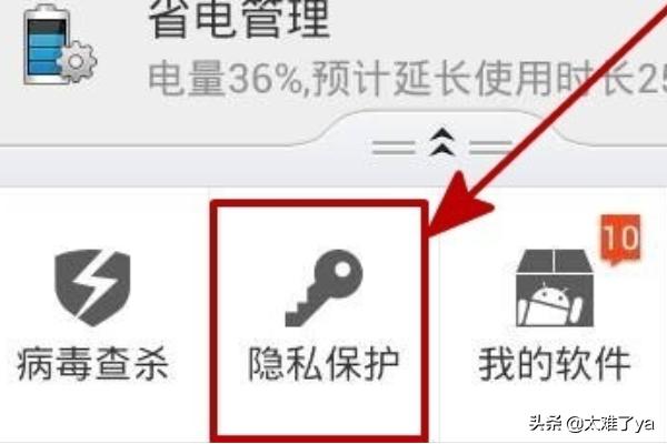 第一步:打开“手机管家”,点击下角“隐私保护”按钮。