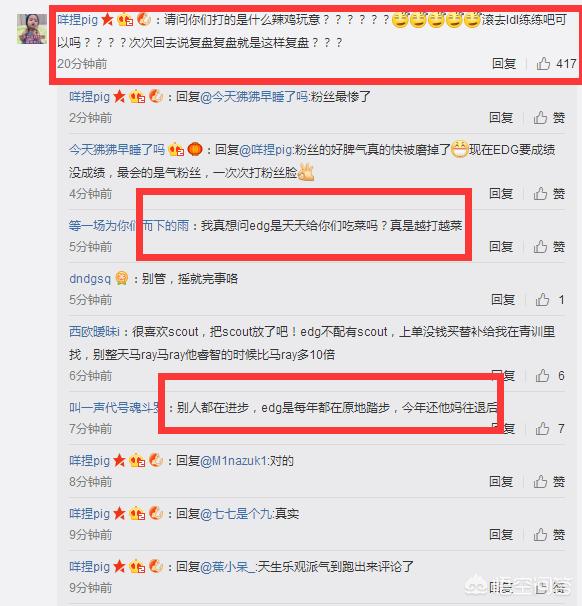 看看大家的评论吧,都是清一色的指责EDG的,不少网友认为EDG越打越退步,甚至调侃俱乐部是“天天吃菜”,可见粉丝是真的失望了。