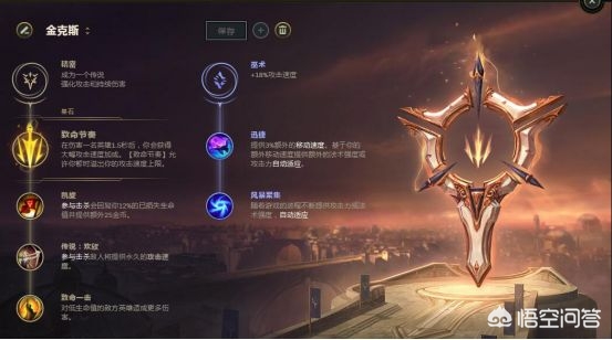 对金克丝来说目前比较适合金克丝是致命节奏,迅捷和强攻作用并不大,前中期的迅捷所给的加成太少,中后期给的加成还没被动好使,而且最近又调整了致命节奏,没有比它更适合的基石符文了。