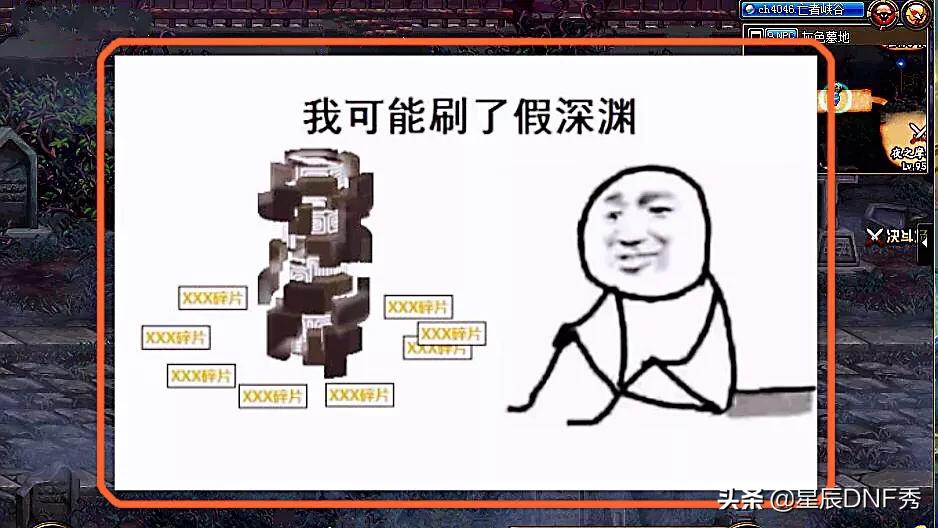 面对即将更新的100级新深渊,面对即将回归的深渊获取极品装备模式,DNF玩家们也是被“深深的恐惧”支配,回顾85–90版本,各种2=1,4=1,甚至是直到现在95版本末期,很多勇士都还没有圆梦“恍惚套”,足见深渊模式下,非酋玩家们的悲剧人生!玩家们扒出了当年的“非酋深渊表情包”,提前感知深渊不出货的酸楚!来一起看看,你还记得吗?