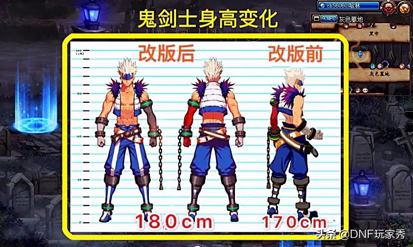 再来看看鬼剑士的身高,改版前的身高约为170cm,但是改版后,鬼剑士的身高增加了10cm,达到了180cm,这样的身高,拿上武器,才真的是称得上“帅气十足”!
