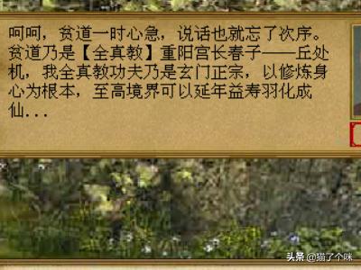 3、加入后为了触发古墓剧情,答题时第一题选丘处机太师父,第二题选甄志丙师叔,第三题也选甄志丙师叔,最后一题选当然是师傅您啦!答完后不要加太多血,在比武时一定要输,让师傅骂你。