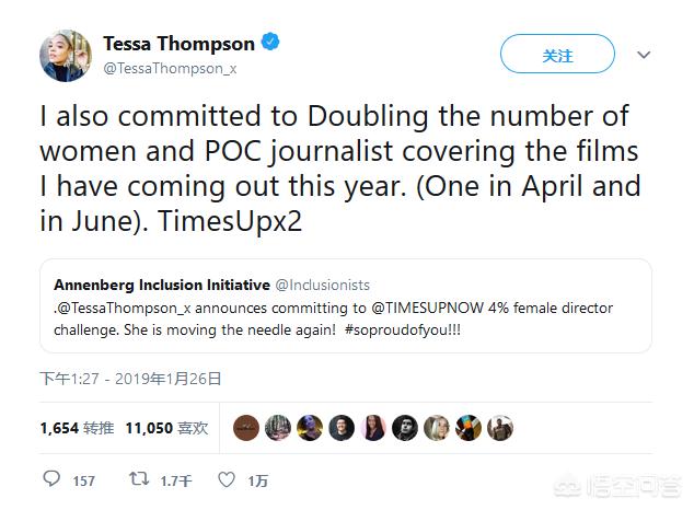 上周日,Thompson在推文中表示在电影中扮演的女性角色将会翻倍,根据iMBD网站显示她除了出演4月份上映的《复仇者联盟4》之外,还将会和Chris Hemsworth一同出演《黑衣人:国际守护者》(Men in Black: International)。