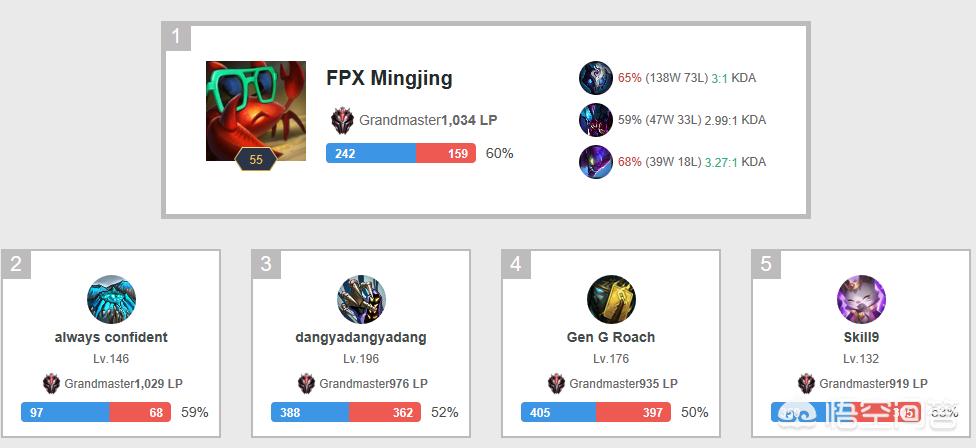 第一MINGJING是FPX的替补打野,第三就是VGyoudang,第四Gen G Roach