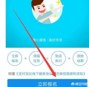 1、支付宝首页搜索“蚂蚁微客”,进入主页点击报名;