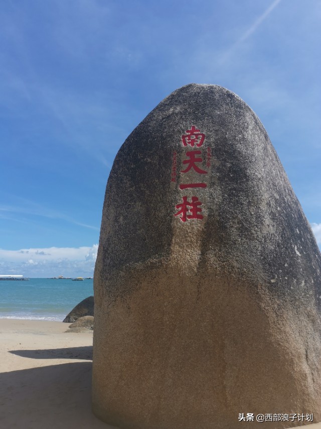 天涯海角景区可参观游览的地方很多,除了大家熟知的天涯海角石,还有“南天一柱”石,这可是1980版人民币2元背后的图案。