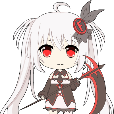 昵称:F娘,审判娘,总之爱怎么叫怎么叫。银白发赤瞳的双马尾loli一枚,代号F。