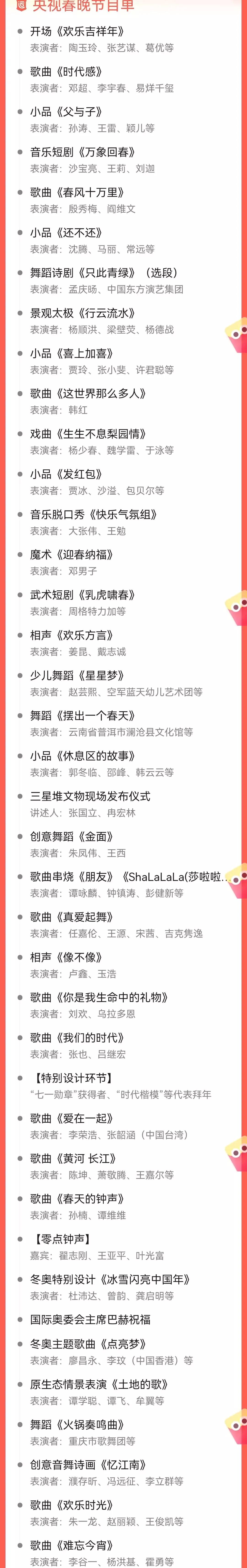 2022春晚节目单来了!你最期待哪个节目