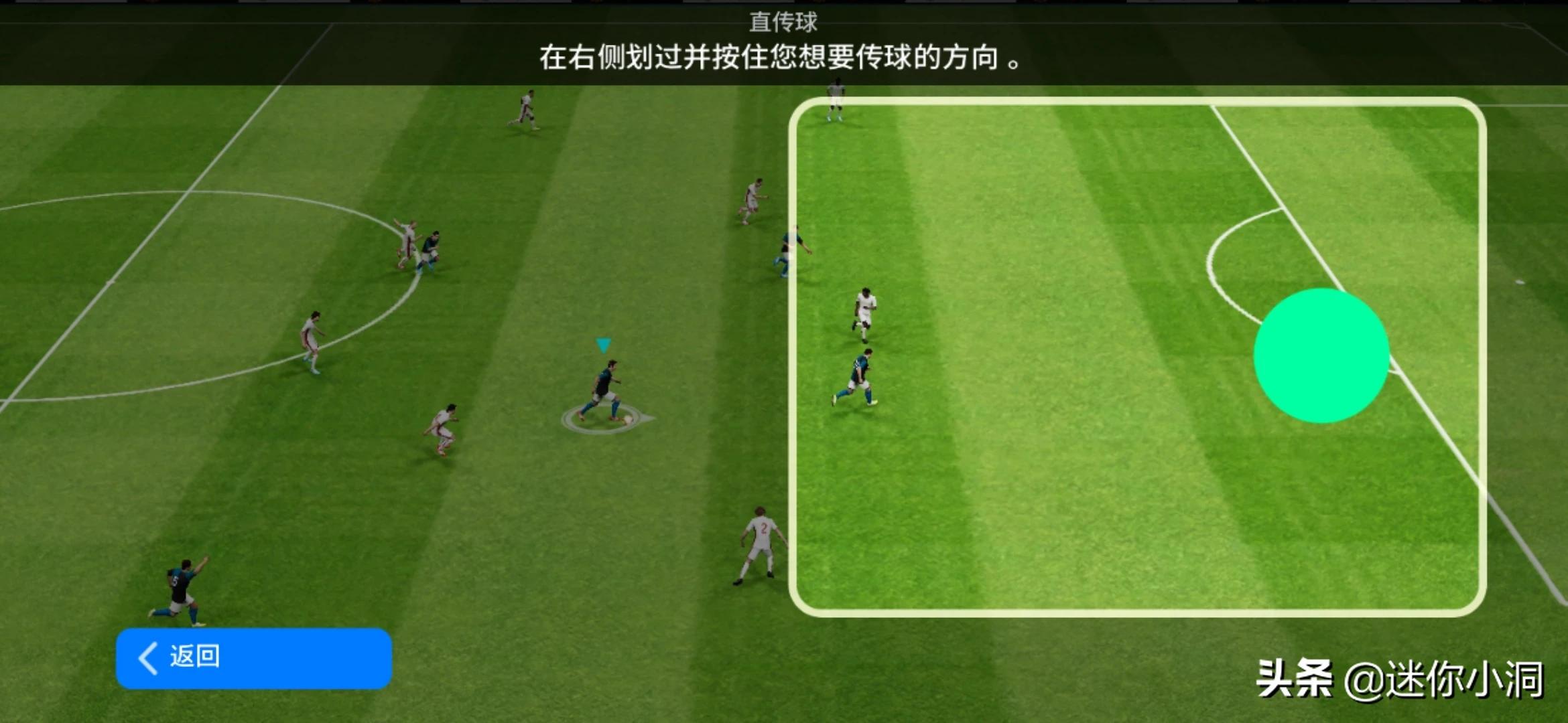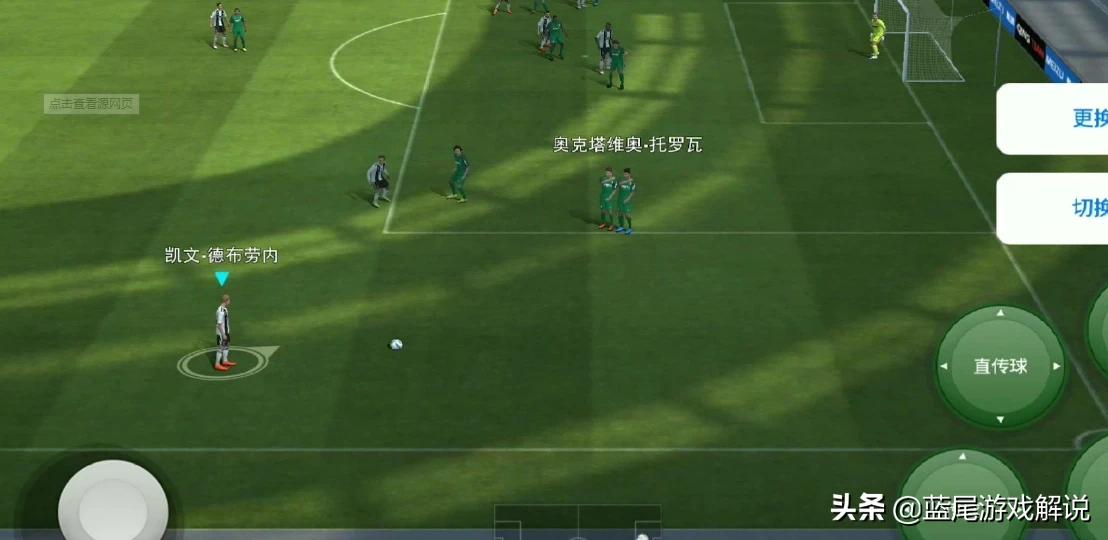 当对方中场防守球员过多、我方无法突破对方中场时,可以轻推右摇杆选择长传,利用高空球来突破敌人的中场防线。
