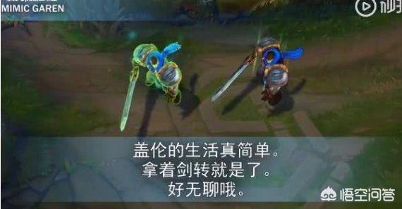妮蔻形容盖伦的生活很无聊,每天就是拿着剑转圈圈。这也很正常的,盖伦可是一个英勇的战士,总不能跟妮蔻一样喜欢变来变去的吧?