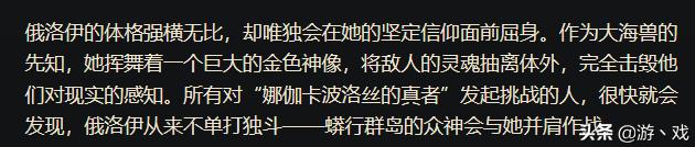其实吧,俄洛伊这个英雄虽然外表不怎么好看,但是实力却是非常强大的,在英雄联盟宇宙中,俄洛伊的背景故事是非常强大的,以下是背景故事的原话!