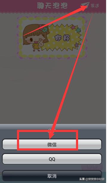 3、选择好款式后,在输入框中输入文字。完成后点击右上角的发送按钮,如图所示:选择微信