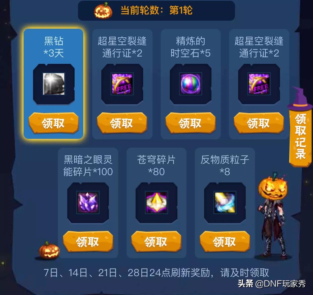 DNF助手更新了新活动,只需要手机点击就送,不需要登录游戏签到,直接领取,这就是“南瓜派对化妆舞会”活动,礼包天天领!