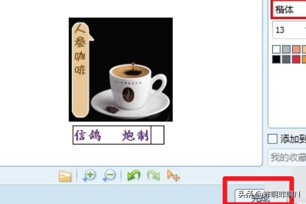 3.在弹出的编辑窗口中,选择A(输入文字)设置好字体类型,大小和颜色。然后在图片编辑框中单击鼠标,在弹出的输入框中输入文字。输入完成后,点击“完成”。