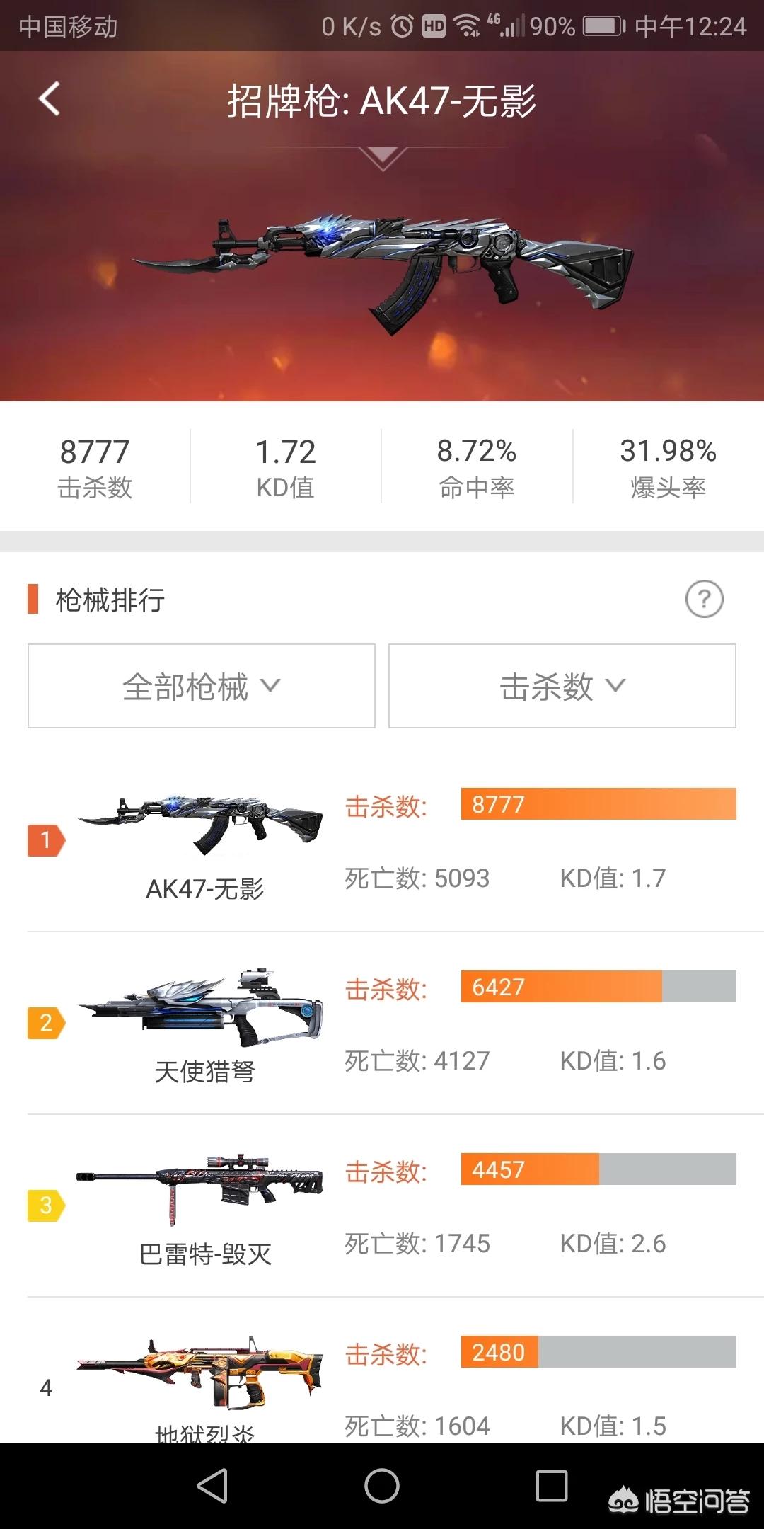 手游的话,个人的枪械使用数据,估计很多人看了也差不多。大部分人那里猎弩一般都在第一,我这里第二是因为有时候玩的没手感。手游里面只要你玩好猎弩,或者风儿子。可以说你都是神一般的存在。
