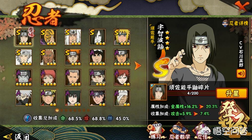 精英:这个模式简单来说就是让你来收集忍者的,也是一个锻炼你忍者搭配的好地方,因为你忍者搭配的不好,肯定无法通关的啦。每个等级对应不同的忍者,你等级越高能收集的忍者也就越强。