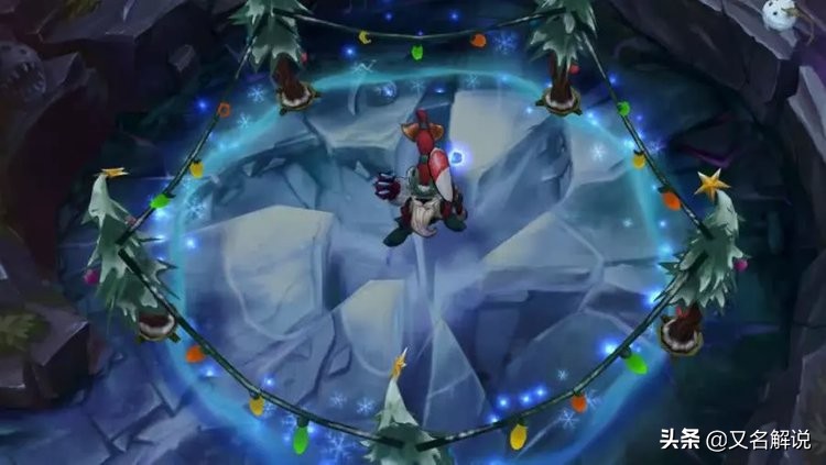 小法这款皮肤是许久前的一款冰雪节限定皮肤了,小法外形酷似圣诞老人,手里拿着一只圣诞糖果十分喜感,我们再来看看E技能,E技能效果大家都知道,只能说小法这款皮肤E技能特效十分称冰雪节这张地图的景了,它由五颗圣诞树组成,再用彩色灯光连起来,也是很与快来的圣诞节相称了