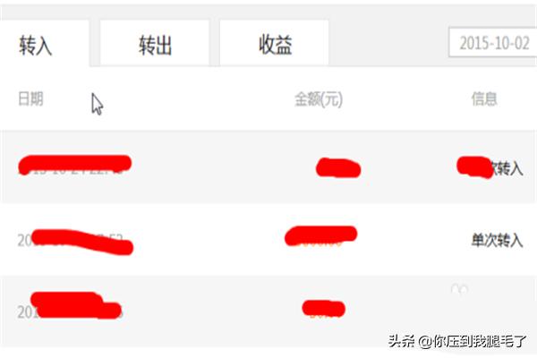 3页面的下半部分是转入、转出和收益明细。可以看到,页面上可以对时间进行选择,针对性比较强。