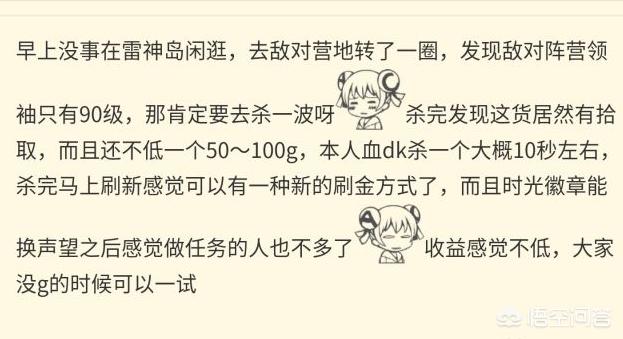 此次刷金BUG的原理其实很简单,熊猫人之谜版本的雷神岛上拥有部落和联盟方两个阵营领袖,随着版本更新玩家等级都已经到了120级,而这两名领袖的等级还在90级,这也就意味着玩家可以非常迅速击杀该领袖,每次击杀可以掉落50-100金币,看似不多,但是领袖死亡就会立即刷新,并且可以使用8.0版本野外常见的4+4刷怪方法,因此效率非常高,据说一组号一天8小时可以刷上百万金币。按照月卡价格算也有几百块了。