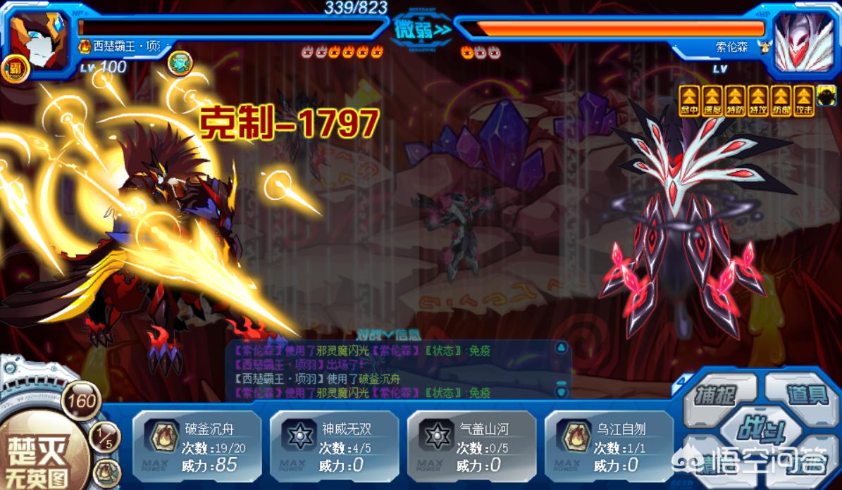第三关,BOSS每回合偷强,而且每回合三项+1(特攻/命中/速度),先制小于3伤害高,两命!所以在持续的这块,我不建议用项羽,可以准备一个其他的。毕竟项羽只能算是一个主攻手(魂印PVE无效,只适合打PVP,打BOSS只能当个纯输出,而且BOSS还不能封属,一旦封属根本不能当主力)。