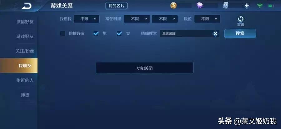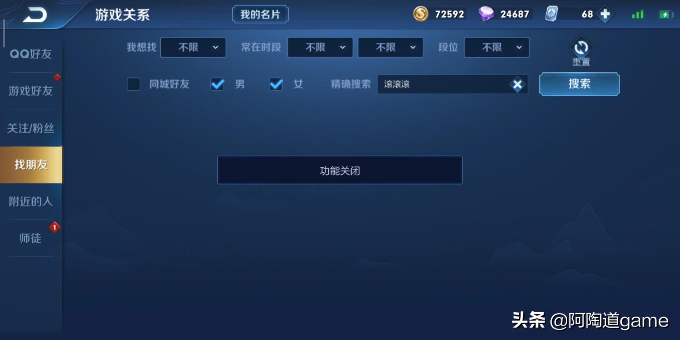 王者荣耀里有个找朋友但是为什么我一点搜索就提示功能关闭