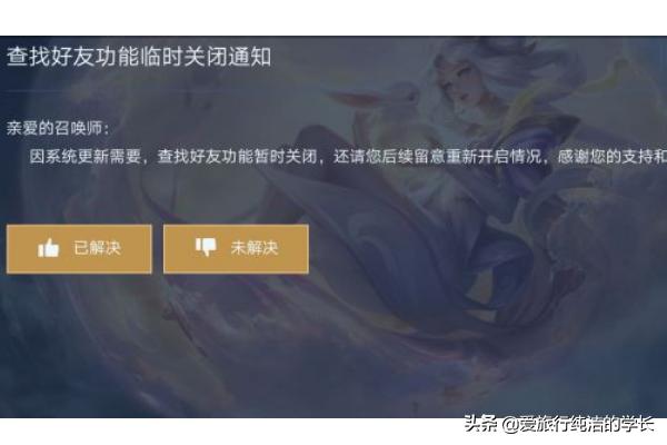 王者荣耀关闭搜索好友功能是因为随着游戏的不断扩大和发展,越来越多的用户出现了各种各样的问题和安全隐患。