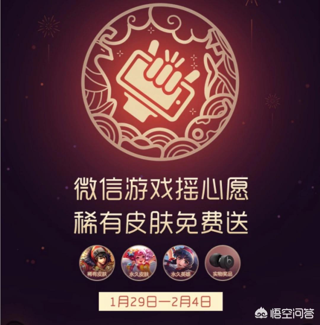 第二,摇心愿活动29号开启,本次活动是微信大区的,在1月29日至2月2日12:00期间许愿,可得永久皮肤、永久英雄与稀有皮肤,展现欧皇之气的时候到了。
