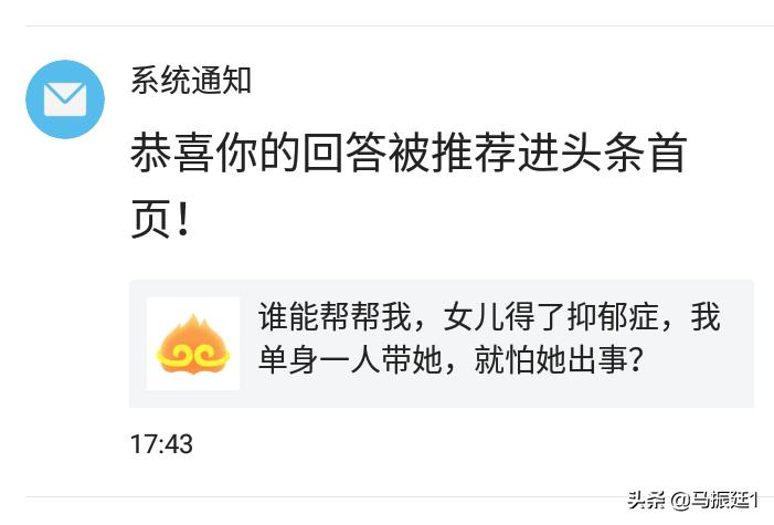 另外,楼下有人责怪你的原生家庭,我非常不赞同。作为一个单身妈妈,带一个女儿已经非常不易,也许你的婚姻和生活对你和女儿的心理照成很大影响,但离婚的人多了去了,不见人人都有忧郁症吧?所以,你不必自责。另外,作为母亲,女儿肯定是爱你和关注你的,如果你活的快乐,健康,幸福,她势必也跟着你一起健康快乐,茁壮成长。