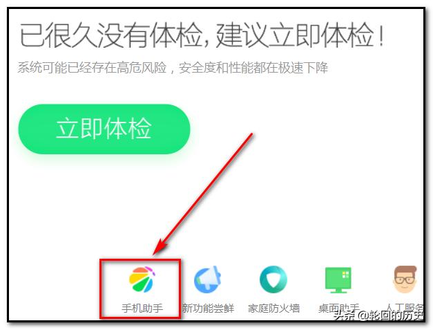 2、找到手机助手,将其打开,如下图红色剪头所指。