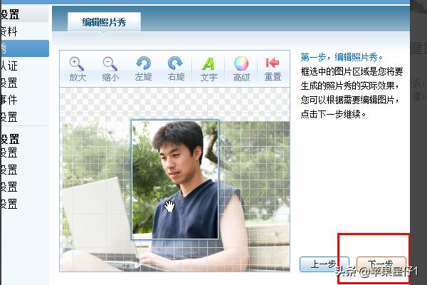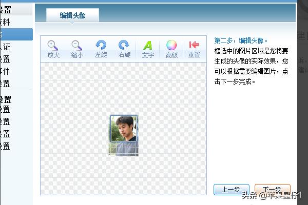 5、点击“下一步”,开始进入自己的头像设置,头像的设置实际上就是一个缩小版的照片秀。